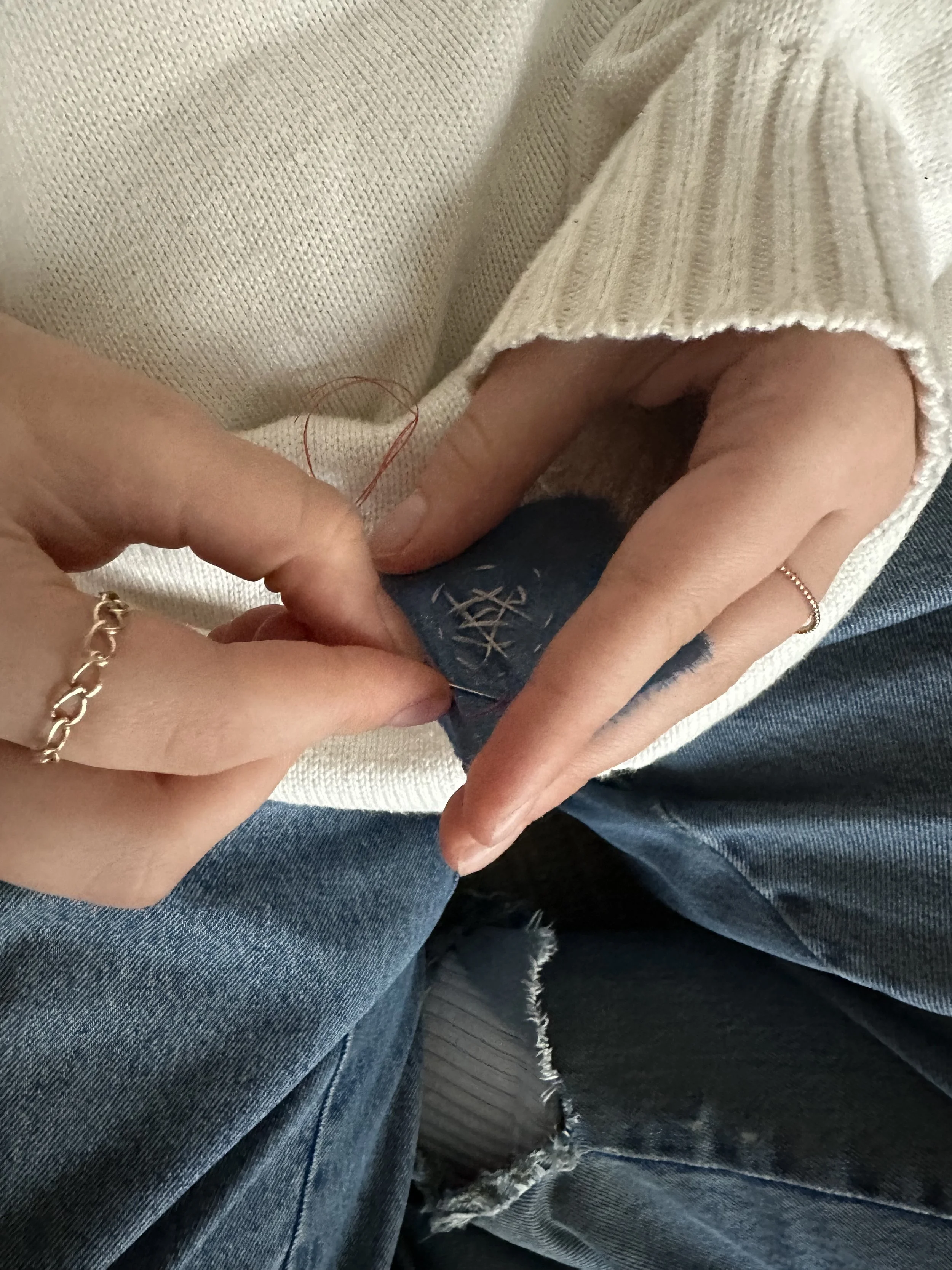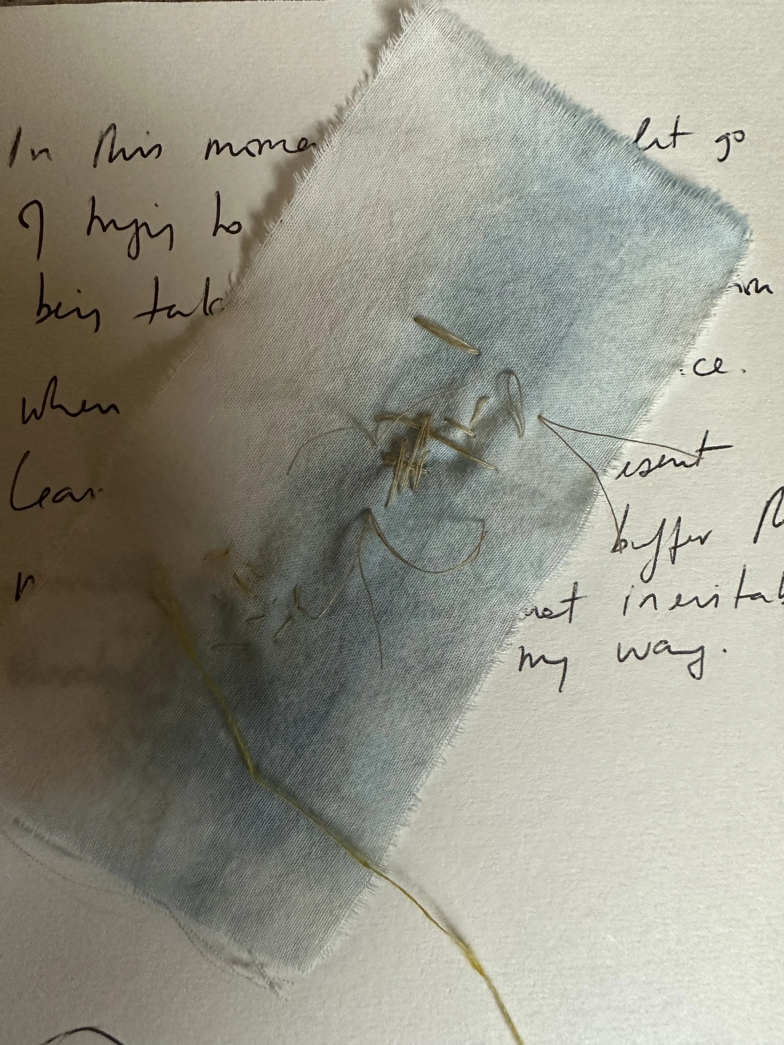 Embodied Stitching is a term I coined to explain a deeper, more contemplative way of making that cultivates greater awareness of the self and others. It follows a process of grounding and short guided-mindfulness practice, anchored to an intuitive prompt. This flows into a free-writing process, which is then translated into a stitched form. The stitched form becomes the archive of the process. Finally, participants have the opportunity to share: whether that be the story they have unearthed, how they found the process, and/or anything else that came up for them. It provides opportunities to learn and unlearn ways of interacting with the materials as well as oneself.